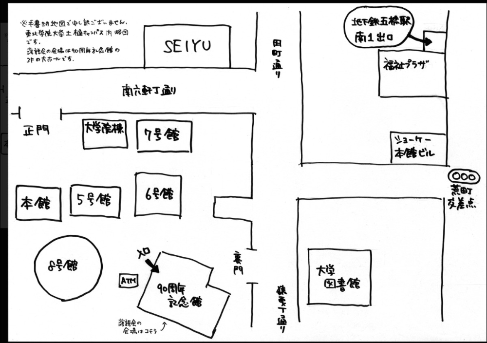 会場は東北学院大学の土樋キャンパス(新しく出来た五橋キャンパスではないのでお間違え無いように)。キャンパス内にある90周年記念館の3階にある大ホールです。